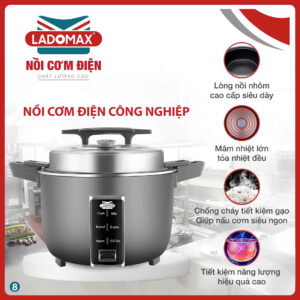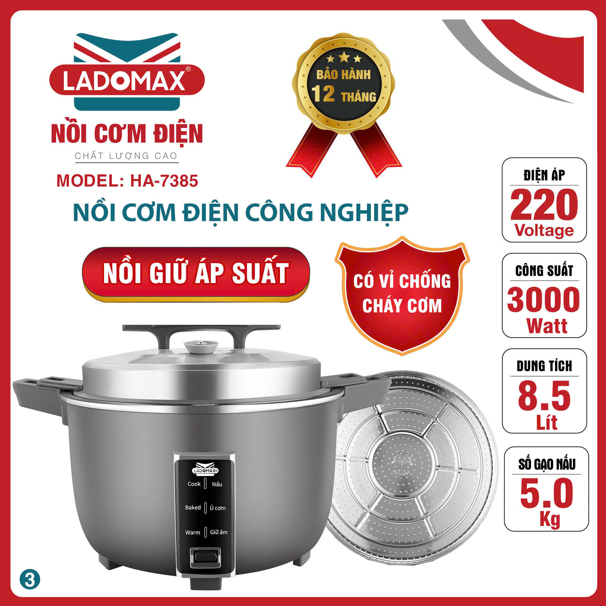 Với những tính năng vượt trội này, nồi cơm điện công nghiệp Ladomax HA-7385 chắc chắn là sự lựa chọn lý tưởng cho các cơ sở kinh doanh, giúp việc nấu cơm trở nên nhanh chóng, tiện lợi và tiết kiệm hơn bao giờ hết.